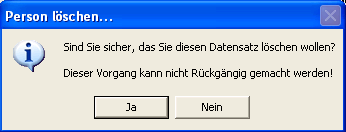 Bestätigen Sie die darauf folgende Sicherheitsabfrage mit [Ja], wenn Sie die Person wirklich aus dem Datenbestand entfernen möchten. Wenn Sie die Aktion abbrechen möchten, betätigen Sie die Schaltfläche [Nein].